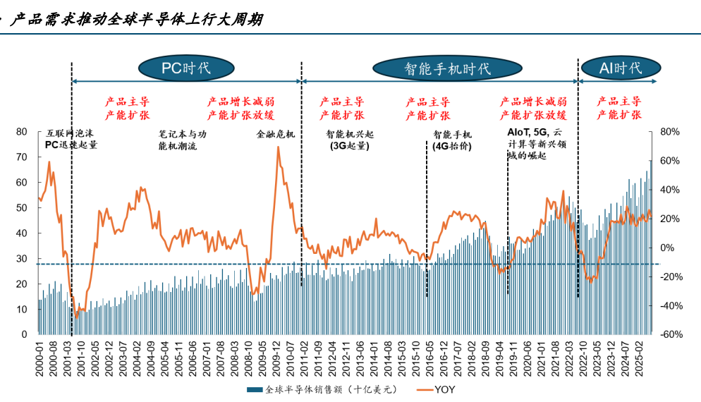 中国“十五五”政策顶层设计为半导体产业注入确定性增量。政策明确将半导体全产业链纳入国家战略重点,数字化的经济、人工智能、智能网联汽车等新兴起的产业的加速发展,为国产芯片创造出从消费电子到工业控制、从数据中心到无人驾驶的全方位应用场景。以存储芯片为例,AI大模型训练与推理需求激增直接拉动HBM高带宽内存、LPDDR5/5X等先进存储芯片的爆发式增长,形成“需求-技术-产业”的良性循环。